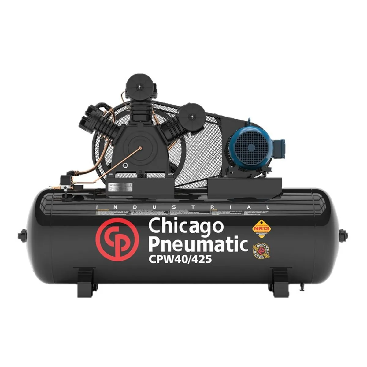 O Compressor de Ar Chicago Pneumatic CPW 40 – 40 Pés 425 Litros Trifásico é um equipamento robusto, projetado para uso industrial em ambientes que exigem alta vazão, estabilidade e confiabilidade contínua. Com reservatório de 425 litros, deslocamento de ar de 40 PCM e funcionamento trifásico, ele garante entrega constante de ar comprimido para ferramentas pneumáticas, linhas de produção e operações de alta demanda.