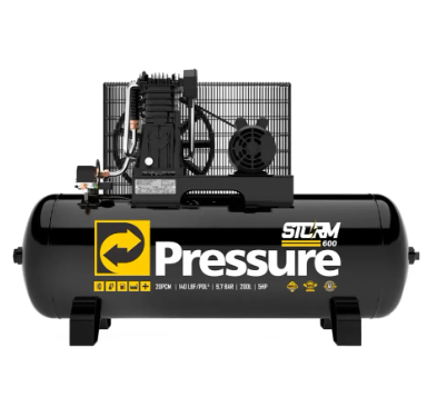 O Compressor de Ar Storm 600 20 PCM 200 Litros 175 PSI da Pressure é um equipamento robusto desenvolvido para aplicações profissionais que exigem alta pressão e grande vazão de ar comprimido.